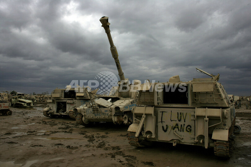 写真は4日、バグダッド郊外にある米軍前進作戦基地に隣接する、故サダム・フセイン(Saddam Hussein)元大統領政権時代の戦車や、大砲が廃棄されている場所。(c)AFP/DAVID FURST