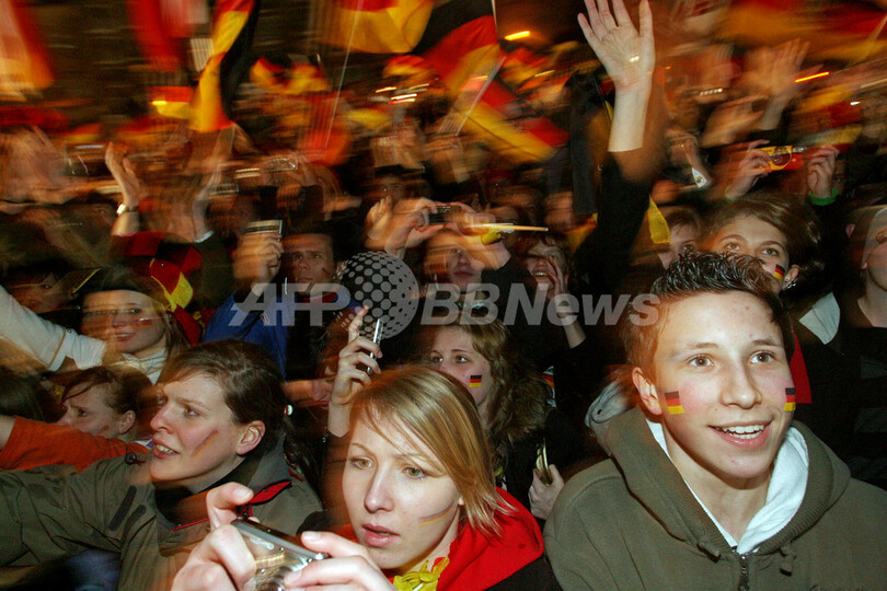 【ケルン/ドイツ 4日 AFP】ハンドボール、男子ハンドボール世界選手権2007(Men’s Handball World Championship)、決勝でポーランドを29-24で降し29年振りの優勝を果たしたドイツチームは、ケルン市庁舎で祝勝会を行い、ファンと共に優勝の喜びを分かち合った。写真は、ファンの声援に応えるGKヘニング・フリッツ(Henning Fritz、中央)とミヒャエル・クラウス(Michael Kraus、左)。(c)AFP/JACQUES DEMARTHON
