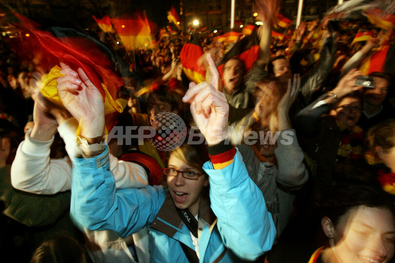 【ケルン/ドイツ 4日 AFP】ハンドボール、男子ハンドボール世界選手権2007(Men’s Handball World Championship)、決勝でポーランドを29-24で降し29年振りの優勝を果たしたドイツチームは、ケルン市庁舎で祝勝会を行い、ファンと共に優勝の喜びを分かち合った。写真は、ファンの声援に応えるGKヘニング・フリッツ(Henning Fritz、中央)とミヒャエル・クラウス(Michael Kraus、左)。(c)AFP/JACQUES DEMARTHON
