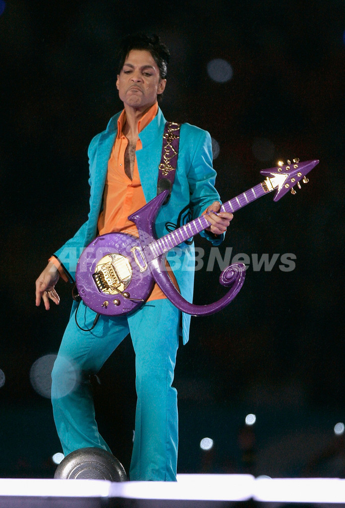 写真は、パフォーマンスを披露するプリンス。(c)AFP/JEFF HAYNES