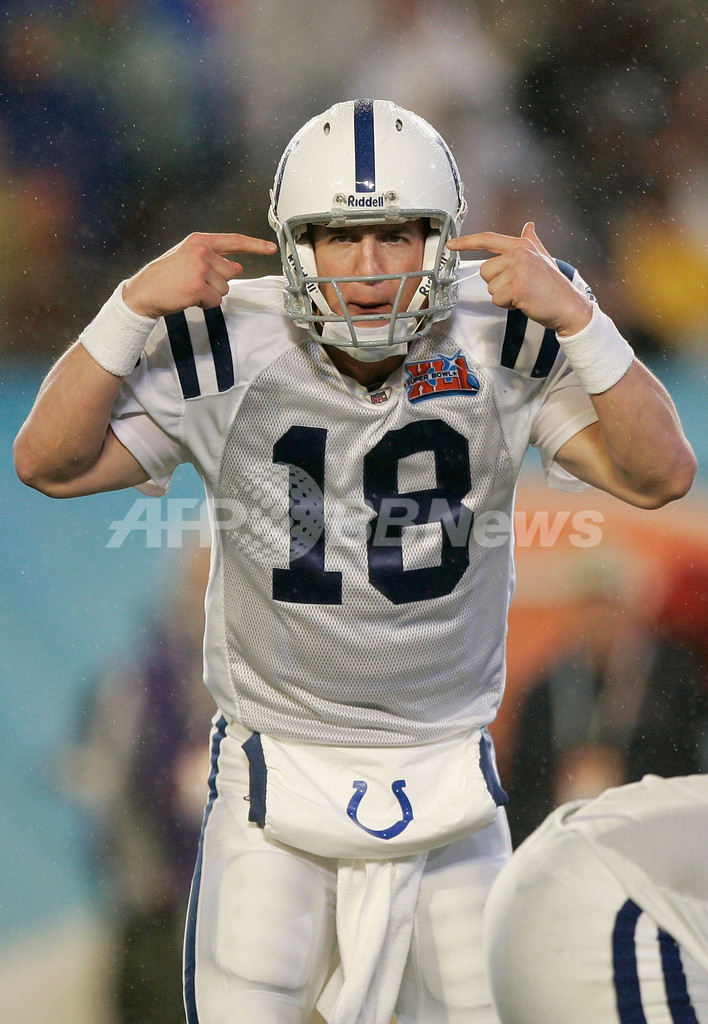 【マイアミガーデンズ/米国 4日 AFP】NFL、第41回スーパーボウル(Super Bowl XLI)、シカゴ・ベアーズ(Chicago Bears)vsインディアナポリス・コルツ(Indianapolis Colts)。コルツのQBペイトン・マニング(Peyton Manning)は、1インターセプトを喫するも1タッチダウンを含むパス38本中25本を成功させ247ヤードを獲得しチームの勝利に貢献した。試合は29-17でコルツが勝利し36年振りに2度目となるスーパーボウル制覇を果たした。