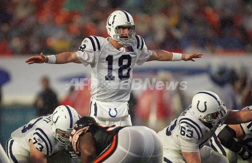 【マイアミガーデンズ/米国 4日 AFP】NFL、第41回スーパーボウル(Super Bowl XLI)、シカゴ・ベアーズ(Chicago Bears)vsインディアナポリス・コルツ(Indianapolis Colts)。コルツのQBペイトン・マニング(Peyton Manning)は、1インターセプトを喫するも1タッチダウンを含むパス38本中25本を成功させ247ヤードを獲得しチームの勝利に貢献した。試合は29-17でコルツが勝利し36年振りに2度目となるスーパーボウル制覇を果たした。