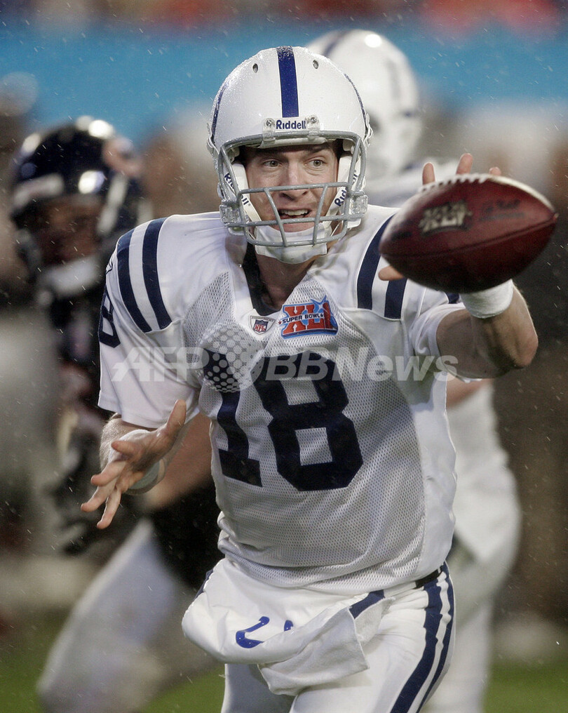 【マイアミガーデンズ/米国 4日 AFP】NFL、第41回スーパーボウル(Super Bowl XLI)、シカゴ・ベアーズ(Chicago Bears)vsインディアナポリス・コルツ(Indianapolis Colts)。コルツのQBペイトン・マニング(Peyton Manning)は、1インターセプトを喫するも1タッチダウンを含むパス38本中25本を成功させ247ヤードを獲得しチームの勝利に貢献した。試合は29-17でコルツが勝利し36年振りに2度目となるスーパーボウル制覇を果たした。