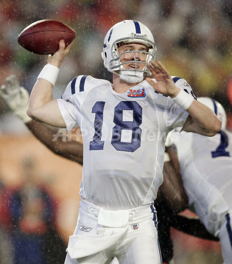 【マイアミガーデンズ/米国 4日 AFP】NFL、第41回スーパーボウル(Super Bowl XLI)、シカゴ・ベアーズ(Chicago Bears)vsインディアナポリス・コルツ(Indianapolis Colts)。コルツのQBペイトン・マニング(Peyton Manning)は、1インターセプトを喫するも1タッチダウンを含むパス38本中25本を成功させ247ヤードを獲得しチームの勝利に貢献した。試合は29-17でコルツが勝利し36年振りに2度目となるスーパーボウル制覇を果たした。