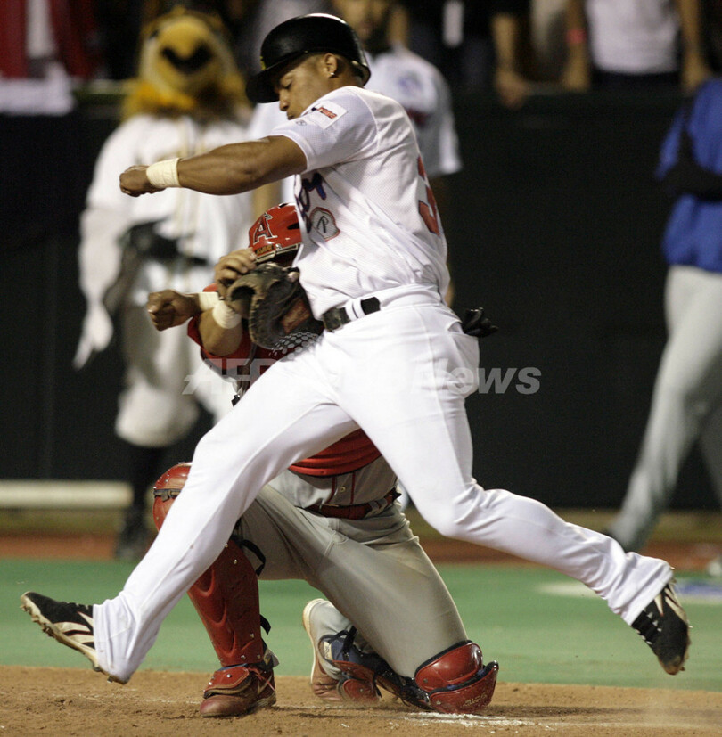 スポーツ 野球 <野球 カリビアンシリーズ07>ドミニカ共和国 プエルトリコに快勝し3連勝 - プエルトリコ 2007年2月5日 12:52 発信地:プエルトリコ [ 中南米 プエルトリコ ] このニュースをシェア ‹ › ❮ 8/8 ❯ 写真は、本塁上でプエルトリコのヤディアー・モリーナ(%%Yadier Molina%%、左)とクロスプレーになるドミニカ共和国のトニー・バティスタ(%%Tony Batista%%)。(c)AFP/JUAN BARRETO 画像作成中 ! 【カロリーナ/プエルトリコ 4日 AFP】野球、カリビアンシリーズ(Caribbean Series)、ドミニカ共和国vsプエルトリコ。ドミニカ共和国の先発ファビオ・カストロ(Fabio Castro)は、5回を2安打無失点に抑え勝利投手に輝いた。試合はドミニカ共和国が12-0でプエルトリコに快勝し、3連勝を飾った。(c)AFP/JUAN BARRETO 野球 一覧へ> メディア・報道関係・法人の方向け 写真・動画 購入のお問合せ>
