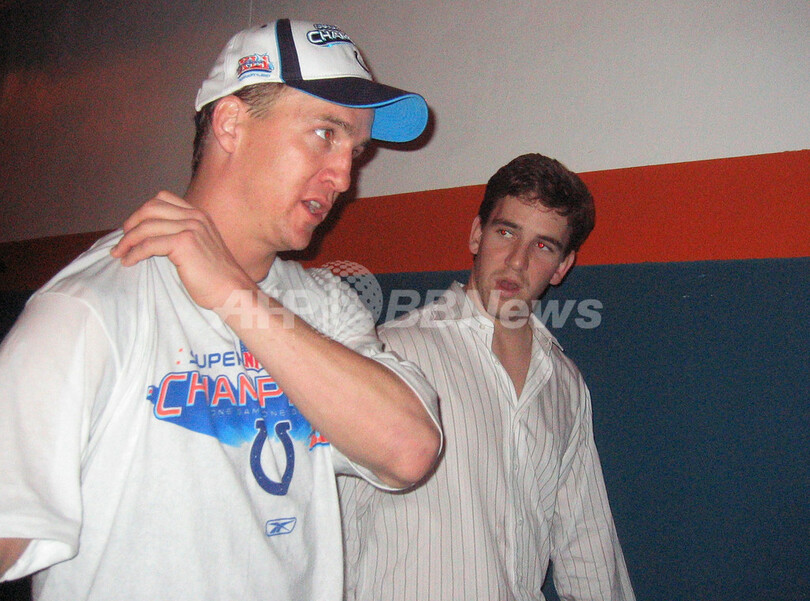 【マイアミガーデンズ/米国 4日 AFP】NFL、第41回スーパーボウル(Super Bowl XLI)、シカゴ・ベアーズ(Chicago Bears)vsインディアナポリス・コルツ(Indianapolis Colts)。試合は29-17でコルツが勝利し36年振りに2度目となるスーパーボウル制覇を果たした。写真は、試合終了後ロッカールームに戻り、ヴィンス・ロンバルディ・トロフィー(Vince Lombardi trophy)を高々と掲げるコルツの選手。(c)AFP/Getty Images Donald Miralle