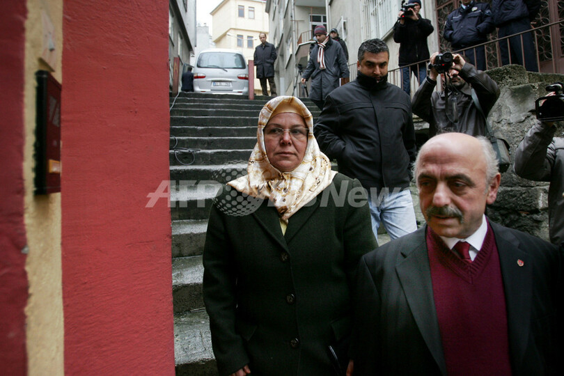 【トラブゾン/トルコ 5日 AFP】トラブゾン(Trabzon)で5日、トルコ人少年(17)に殺害されたローマ・カトリック教会のアンドレア・サントロ(Andrea Santoro)司祭の追悼式が行われた。イタリア出身のサントロ司祭は、欧州の新聞に預言者ムハンマド(Mohammed)を風刺した漫画が掲載されイスラム世界全体に怒りが広がった時期、トラブゾンの町で少年に射殺されている。犯人の少年(氏名のイニシャルは「O.A.」)は後に、犯行を自白。追悼式には少年の両親が参加して、カミッロ・ルイーニ(Camillo Ruini)枢機卿らと面会した。写真は同日、追悼式が行われたSaint Maria教会に到着した少年の両親。(c)AFP/MUSTAFA OZER