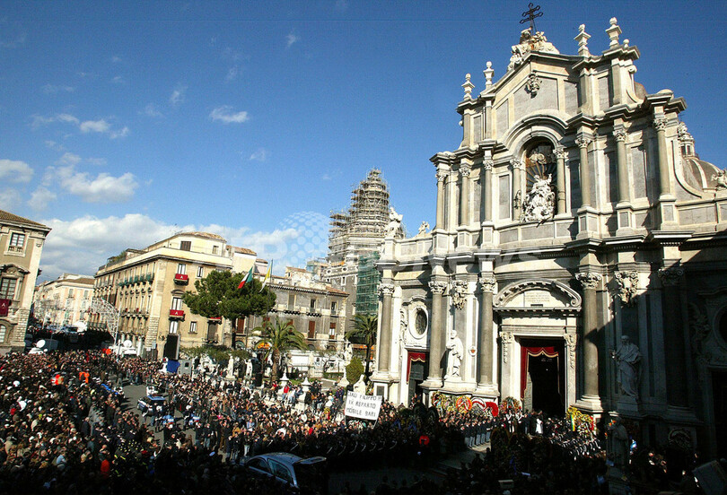 【ローマ/イタリア 5日 AFP】2日に行われたサッカー、イタリア・セリエA・第22節のカターニア(Catania)vsパレルモ(US Citta di Palermo)戦の暴動で、サポーターが投げた小型爆弾が直撃し死亡した警察官のフィリッポ・ラチティ(Filippo Raciti)さんの葬儀が営まれ、政府関係者など約千人が参列し、葬儀場となったカターニア大聖堂(Catania Cathedral)の外には数千人が弔問に訪れるなど事態の深刻さを窺わせた。