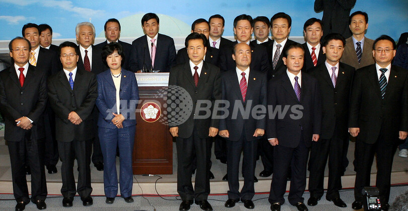 ニュース 政治・経済 与党・ウリ党から23人が大量離党、新党結成へ - 韓国 2007年2月6日 15:22 発信地:韓国 [ 韓国・北朝鮮 韓国 ] このニュースをシェア ‹ › ❮ 2/2 ❯ 写真は6日、ソウル(Seoul)の下院議会で記者会見を開き、離党を発表するウリ党党員ら。(c)AFP/LEE JONG-SEUNG 画像作成中 ! 【ソウル/韓国 6日 AFP】与党・開かれたウリ党(Uri Party)の党員23人が6日、新党結成のための離党を明らかにした。国内では、12月に予定される選挙で盧武鉉(ノ・ムヒョン、Roh Moo-Hyun)大統領率いる同党が野党にまわるのではないかとの見方が強まっている。写真は6日、ソウル(Seoul)の下院議会で記者会見を開き、離党を発表するウリ党党員ら。(c)AFP/LEE JONG-SEUNG 政治・経済 一覧へ> メディア・報道関係・法人の方向け 写真・動画 購入のお問合せ>