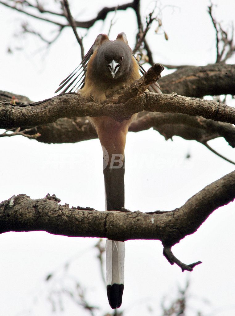 【イスラマバード/パキスタン 6日 AFP】南アジアに生息する鳥、Rufous treepieは、カササギ(学名:Pica pica)の欧州種と比較して羽は短く丸い一方、より長い尾を持つ。食料を探す時の動きが非常に俊敏で、木の枝から枝へとよじ登ったりしがみついたりする。えさの捕獲のために移動する際には、オウチュウやチメドリなど別種の鳥類との混合グループを作って動くこともある。写真はイスラマバード(Islamabad)で6日、木の上で休むRufous treepie。(c)AFP/Aamir QURESHI