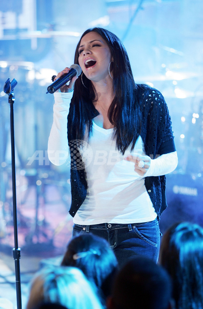【ニューヨーク/米国 7日 AFP】歌手のキャサリン・マクフィー(Katharine McPhee)が5日、MTVタイムズ・スクウェア・スタジオ(MTV Times Square Studios)で行われた音楽専門チャンネルMTVの人気音楽情報番組「Total Request Live」の生放送に出演した。人気オーディション番組「アメリカン・アイドル・シーズン5(American Idol Season 5)」で準優勝を飾ったマクフィーのセルフタイトルのデビューアルバム「Katharine McPhee」は1月30日にリリースされている。(c)AFP/Getty Images Scott Gries