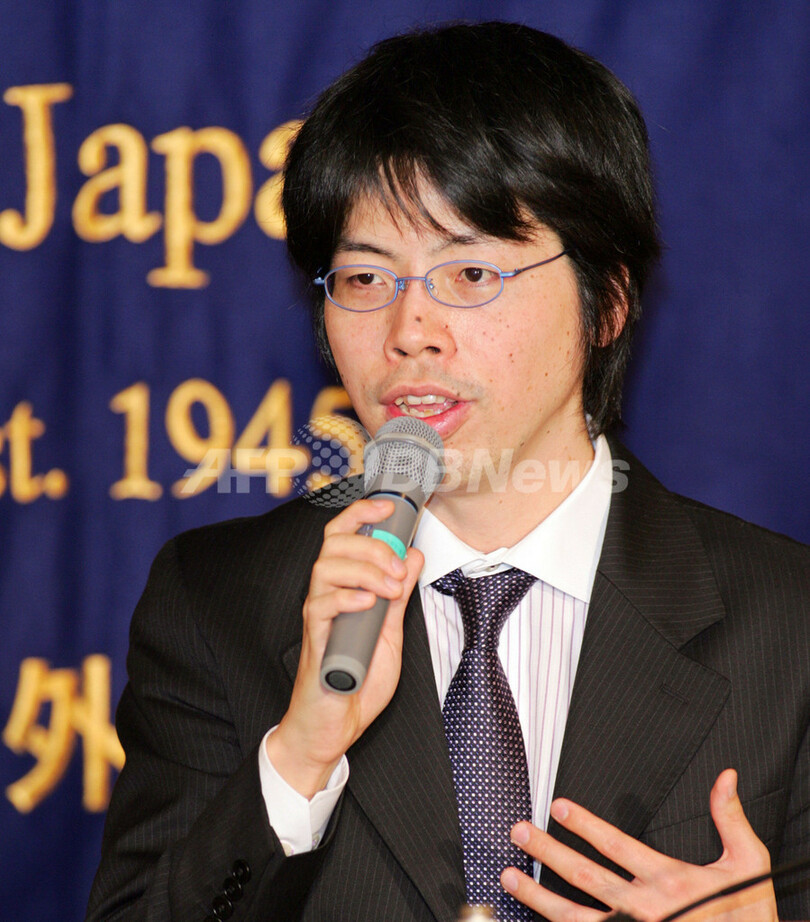 写真は7日、東京の日本外国特派員協会(Foreign Correspondents' Club of Japan)で記者会見するMixiの笠原健治代表取締役。(c)AFP/KAZUHIRO NOGI