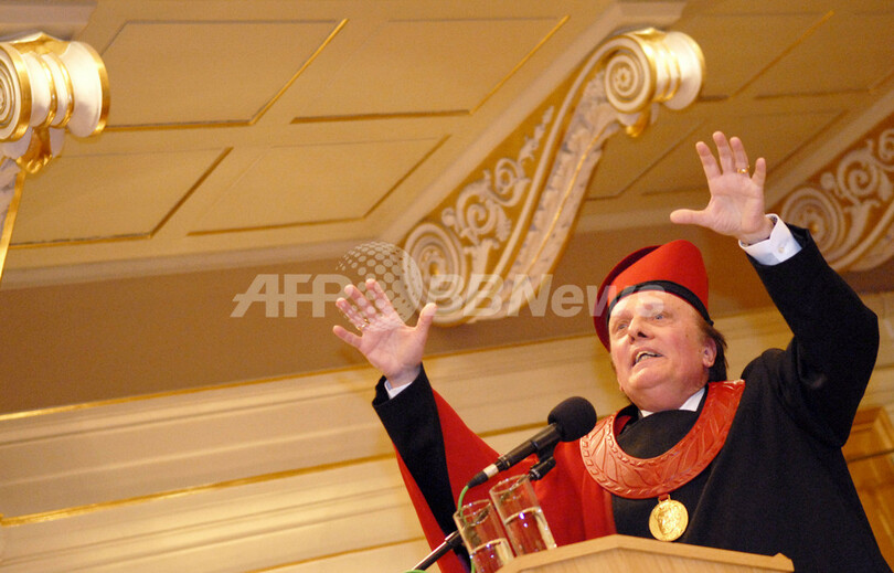 【ブルノ/チェコ 8日 AFP】有名指揮者のズデニェク・マーツァル(Zdenek Macal)が6日、ヤナーチェク音楽院(Janacek Academy of Music and Performing Arts、JAMU)から名誉博士号を授与された。ボストン、ロンドン、ベルリンといった160余りの名高いオーケストラで指揮を務めてきたマーツァルは、音楽祭でのパフォーマンスも知られ、スカラ座(Teatro alla Scala)などのオペラ劇場とも仕事をしてきた。1993年から2002年までニュージャージー交響楽団(New Jersey Symphony Orchestra)で指揮をとっていたマーツァルは2003年、チェコ・フィルハーモニー管弦楽団(Czech Philharmonic Orchestra)の首席指揮者に就任した。写真はマーツァル(右)と同音学院のVaclav Cejpek氏。(c)AFP/Otto Ballon Mierny