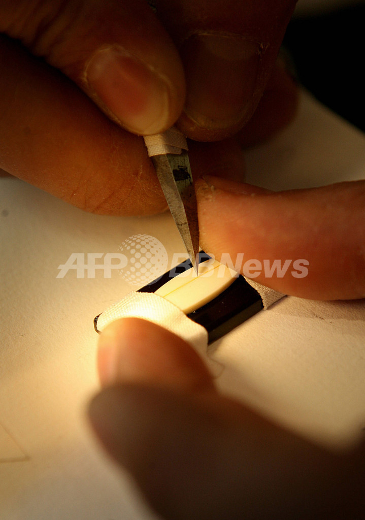 【香港 8日 AFP】香港在住のZhou Yu Kunさんは、見事な特技をもっている。顕微鏡を使い、あらゆる小さなものに字を書くことができるのだ。高性能の顕微鏡を使用して字を書くというこの技術を3年で身につけたKunさんの作品は、1つにつき1万香港ドル(約15万円)以上で売買される。既に20年以上、この技術を仕事にしているが、1つの作品を仕上げるのには、20時間以上の骨のおれる作業を必要とする。写真は、Kunさんにより漢字が書かれたまつ毛。(c)AFP/MIKE CLARKE