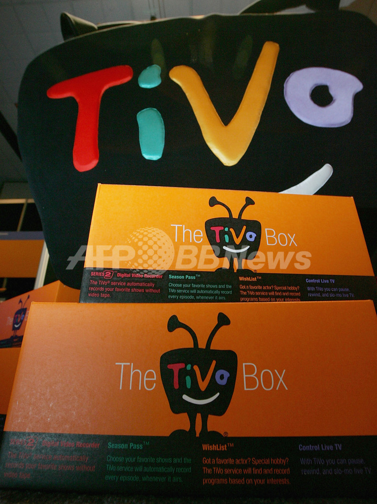 写真は、2005年11月21日、ラスベガスで開催されたコンスーマー・エレクトロニクス・ショーに展示されたTiVoのパッケージ。(c)AFP/Getty Images/Justin Sullivan