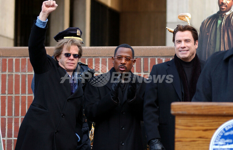 【ボストン/米国 9日 AFP】新作映画「Wild Hogs」の公開を記念して7日、出演俳優らがボストン警察の交通機動隊に1万ドル(約120万円)を寄付する記念イベントが開催された。ブエナビスタ・ピクチャーズ(Buena Vista Pictures)配給の同作品は、仕事のストレスや家庭の問題といった現実から抜け出し、自由なバイク旅行を計画した4人の中年男たちが、旅先でいろいろなハプニングに出くわすというコメディ。全米公開は3月2日から。写真はイベントに登場した(左から)出演俳優のウィリアム・H・メイシー(William H. Macy)、マーティン・ローレンス(Martin Lawrence)、ジョン・トラヴォルタ(John Travolta)。(c)AFP/Getty Images Darren McCollester