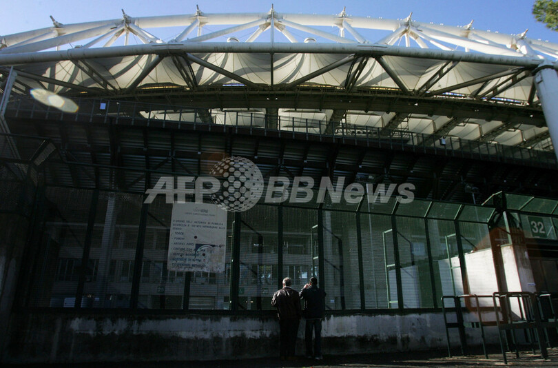 【ローマ/イタリア 8日 AFP】イタリア政府は8日、2日にシチリア島で行われたダービーマッチ、カターニア(Catania)vsパレルモ(US Citta di Palermo)戦でファン同士の衝突が暴動に発展し、警察官1人が死亡した事件を受けて、この日開かれた閣議でリーグ再開の条件となる安全基準が満たされているスタジアムを発表した。安全基準を満たしているのは、ローマ(AS Roma)、シエナ(AC Siena)、トリノ(Torino FC)、カリアリ(Cagliari)、パレルモに加えセリエBのジェノア(Genoa CFC)のスタジアムのみで、イタリアサッカーの象徴的スタジアムとされるACミラン(AC Milan)とインテル(Inter Milan)の本拠地サンシーロ・スタジアム(San Siro Stadium)は認められなかった。これにより、11日に再開されるセリエAは10試合の内5試合が無観客試合となる。写真は、ミラン市内のサンシーロ・スタジアム(2005年8月24日撮影)。(c)AFP/Filippo MONTEFORTE