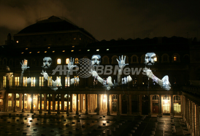 写真は8日、同ショーのリハーサルでパレロワイヤル(Palais Royals)に映し出されたダンサーたちの姿。(c)AFP/FRANCOIS GUILLOT