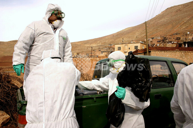 写真は同日、クルド系住民が多数を占めるバトマン県ボガズキョイで家禽(かきん)の処分作業を行う担当者たち。(c)AFP/IHLAS NEWS AGENCY