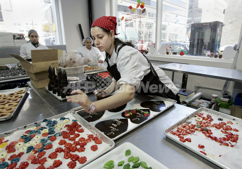 ニュース ライフ 人気チョコレート店、バレンタインデーの準備 - 米国 2007年2月10日 5:28 発信地:米国 [ 北米 米国 ] このニュースをシェア ‹ › ❮ 7/7 ❯ 写真は9日、ハート形のチョコレートに飾りを付けるスタッフ。(c)AFP/Stan HONDA 画像作成中 ! 【ニューヨーク/米国 10日 AFP】ニューヨークのチョコーレート店「ジャック・トレス(Jacques Torres)」は、バレンタインデーに向けた準備を進めている。写真は9日、バレンタインデー用に作られたハート形のチョコレートボックスを見せるフランス人ショコラティエのジャック・トレス氏。トレス氏は「ミスター・チョコレート」と呼ばれている。(c)AFP/Stan HONDA ライフ 一覧へ> メディア・報道関係・法人の方向け 写真・動画 購入のお問合せ>