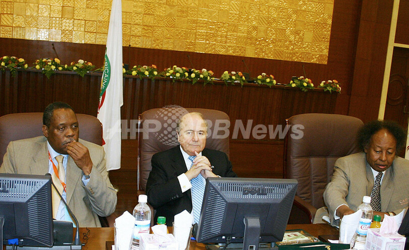 【カーツーム/スーダン 10日 AFP】アフリカサッカー連盟(CAF)の50周年記念式典が、連盟設立当初に本部のあったスーダンのカーツーム(Khartoum)で行われ、国際サッカー連盟(FIFA)のジョセフ・ゼップ・ブラッター会長(Joseph Sepp Blatter)をはじめ連盟関係者が姿を表した。写真は、CAFの役員カマール・シャダド氏(Kamal Shadad、右2)と話をするブラッター会長(左)。(c)AFP/ISAM AL-HAJ