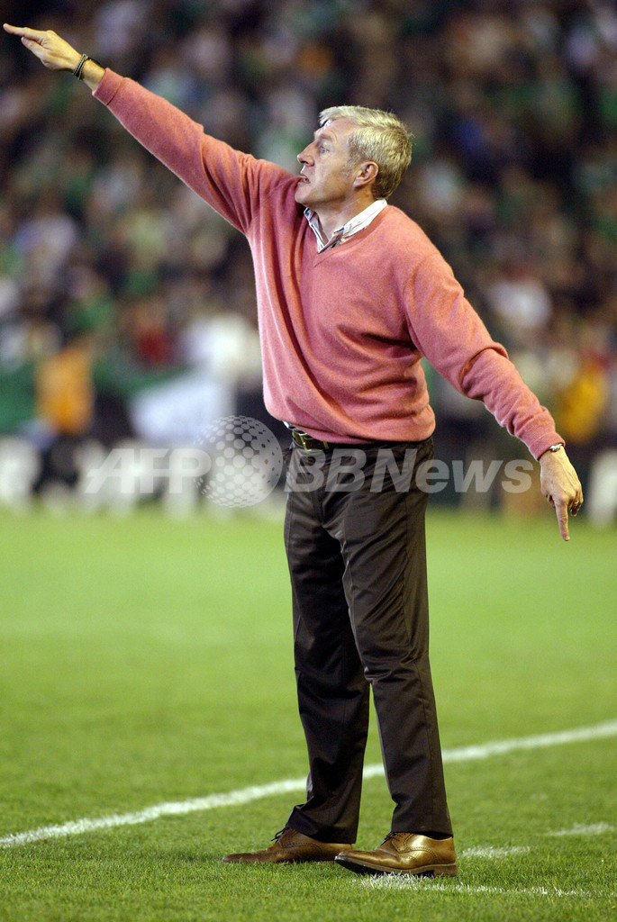 【セビリア/スペイン 10日 AFP】サッカー、スペイン・リーガエスパニョーラ1部・第22節、ベティス(Betis)vsセビージャ(Sevilla)。試合は0-0のスコアレスドローに終わり、両チーム共に勝ち点1ずつを分け合った。写真はボールを見つめる(左から)ベティスのリバス(Rivas)、セビージャのフレデリック・カヌーテ(Frederic Kanoute)とルイス・ファビアーノ(Luis Fabiano)。(c)AFP/CRISTINA QUICLER