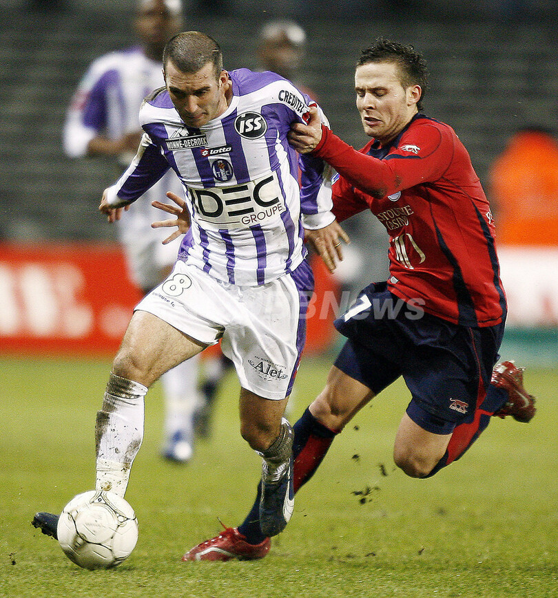 【トゥールーズ/フランス 10日 AFP】サッカー、フランス・リーグ1・第24節、トゥールーズ(Toulouse FC)vsリール(Lille)。試合は0-0で迎えた後半ロスタイム、リールのグレゴリー・タフォロー(Gregory Tafforeau)がオウンゴールにより失点してしまい、試合はそのまま終了、1-0でリールがトゥールーズに敗れた。写真はトゥールーズのローラン・バトル(Laurent Battles、左)とボールを競り合うリールのヨハン・カバイェ(Yohan Cabaye)。(c)AFP/PASCAL PAVANI