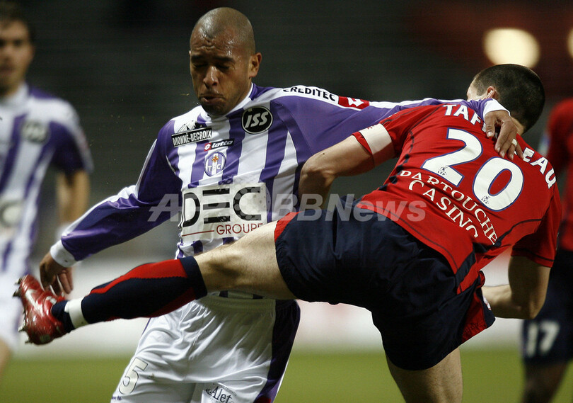 【トゥールーズ/フランス 10日 AFP】サッカー、フランス・リーグ1・第24節、トゥールーズ(Toulouse FC)vsリール(Lille)。試合は0-0で迎えた後半ロスタイム、リールのグレゴリー・タフォロー(Gregory Tafforeau)がオウンゴールにより失点してしまい、試合はそのまま終了、1-0でリールがトゥールーズに敗れた。写真はトゥールーズのローラン・バトル(Laurent Battles、左)とボールを競り合うリールのヨハン・カバイェ(Yohan Cabaye)。(c)AFP/PASCAL PAVANI