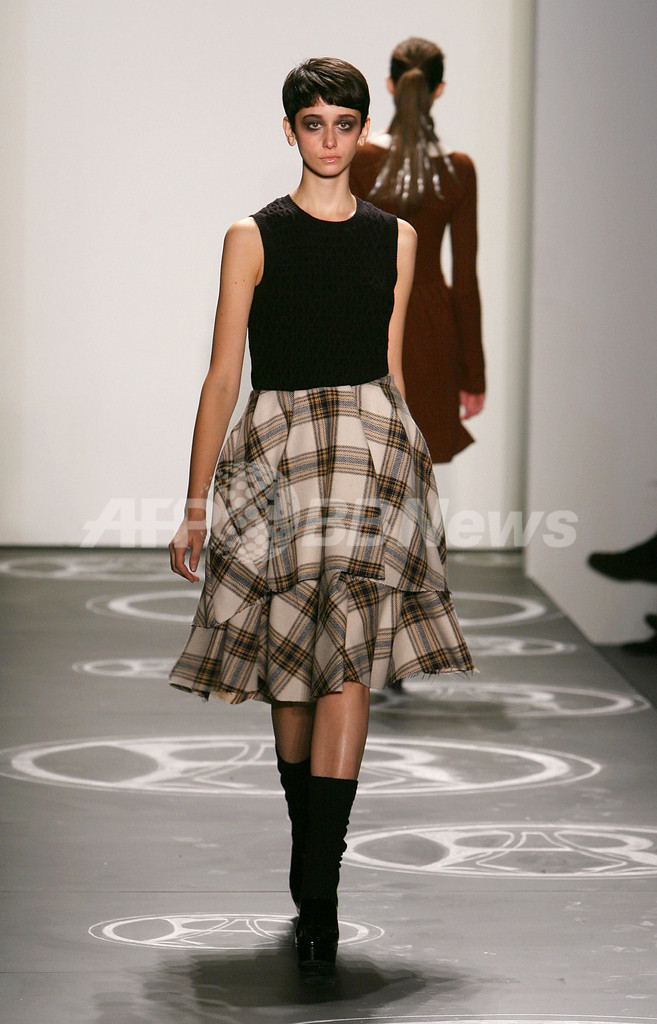 【ニューヨーク/米国 10日 AFP】2月2日より8日間、07/08年秋冬ニューヨーク・コレクションが、開催された。会期中には、約100ブランドがファッションショーや展示会形式で新作を発表。写真は、ラルフ ローレン(Ralph Lauren)のショーに登場したモデルのセシリア・メンデス(Cecilia Mendez)。(c)AFP/DON EMMERT
