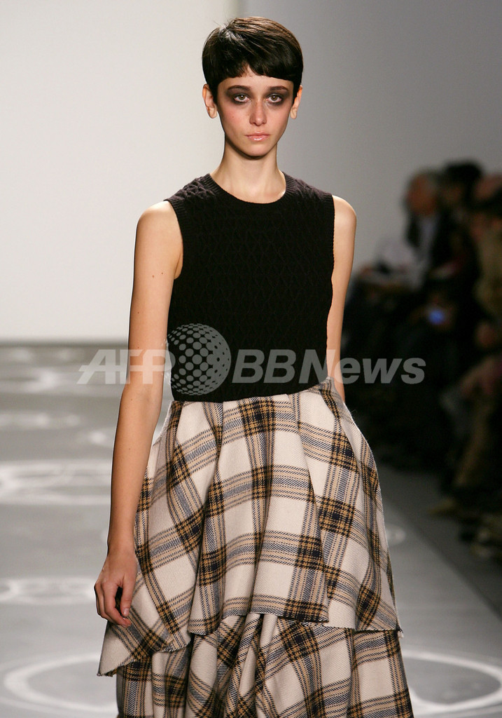 【ニューヨーク/米国 10日 AFP】2月2日より8日間、07/08年秋冬ニューヨーク・コレクションが、開催された。会期中には、約100ブランドがファッションショーや展示会形式で新作を発表。写真は、ラルフ ローレン(Ralph Lauren)のショーに登場したモデルのセシリア・メンデス(Cecilia Mendez)。(c)AFP/DON EMMERT