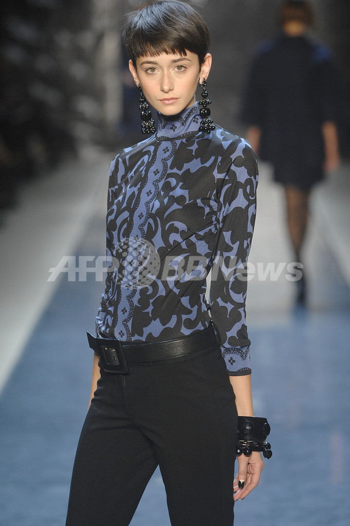 【ニューヨーク/米国 10日 AFP】2月2日より8日間、07/08年秋冬ニューヨーク・コレクションが、開催された。会期中には、約100ブランドがファッションショーや展示会形式で新作を発表。写真は、ラルフ ローレン(Ralph Lauren)のショーに登場したモデルのセシリア・メンデス(Cecilia Mendez)。(c)AFP/DON EMMERT