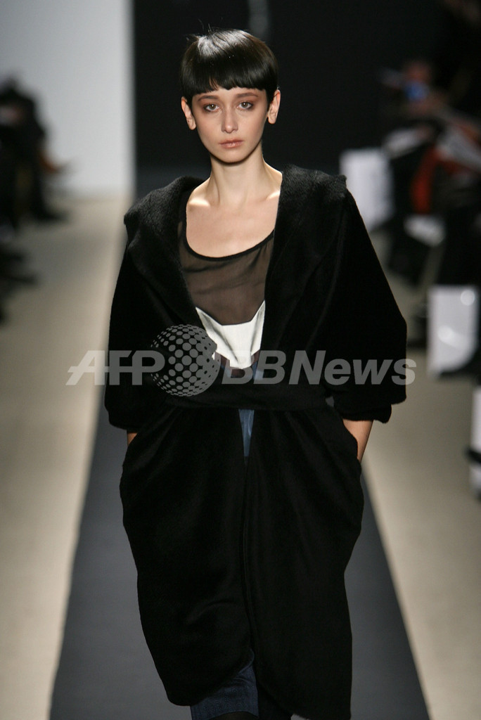 【ニューヨーク/米国 10日 AFP】2月2日より8日間、07/08年秋冬ニューヨーク・コレクションが、開催された。会期中には、約100ブランドがファッションショーや展示会形式で新作を発表。写真は、ラルフ ローレン(Ralph Lauren)のショーに登場したモデルのセシリア・メンデス(Cecilia Mendez)。(c)AFP/DON EMMERT