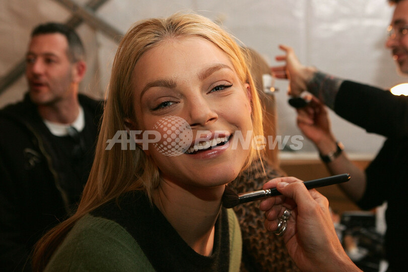【ニューヨーク/米国 8日 AFP】2月2日より8日間、07/08年秋冬ニューヨーク・コレクションが、開催された。会期中には、約100ブランドがファッションショーや展示会形式で新作を発表。写真は、カルロス・ミーレ(Carlos Miele)のショーに登場したモデルのジェシカ・スタム(Jessica Stam)。(c)AFP/Getty Image Fernanda Calfat