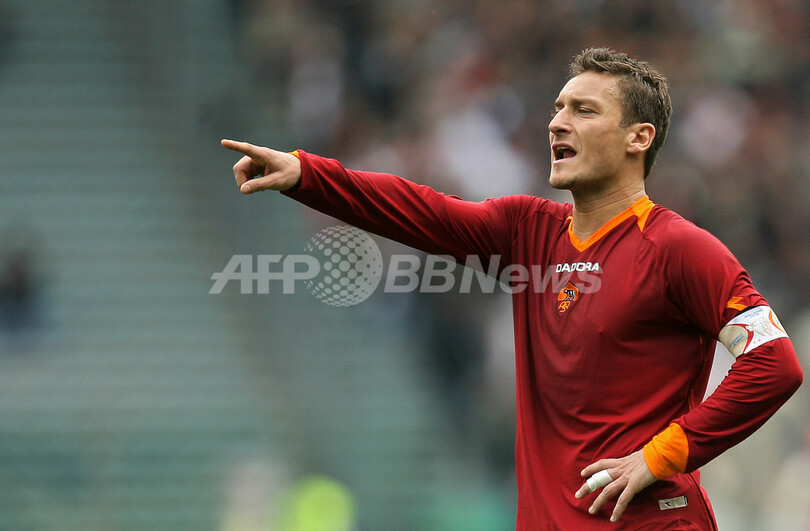 【ローマ/イタリア 11日 AFP】サッカー、イタリア・セリエA・第23節、ASローマ(AS Roma)vsパルマ(Parma)。後半5分、先制ゴールを決めたローマのフランチェスコ・トッティ(Francesco Totti)は、親指を咥えるパフォーマンスを披露しながらピッチを駆け、得点を喜ぶ。試合はローマが3-0でパルマに快勝し、連勝で今季15勝目を挙げた。(c)AFP/FILIPPO MONTEFORTE