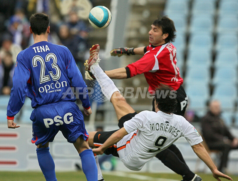 【ヘタフェ/スペイン 11日 AFP】サッカー、スペイン・リーガエスパニョーラ1部・第22節、ヘタフェ(Getafe CF)vsバレンシア(Valencia)。ヘタフェのマリオ・コテロ(Mario Cotelo、右)は後半1分に先制となるゴールを決めチームの勝利に貢献した。試合は3-0でヘタフェが勝利を収め、リーグ10勝目をマークし勝ち点を35に伸ばした。(c)AFP/PHILIPPE DESMAZES