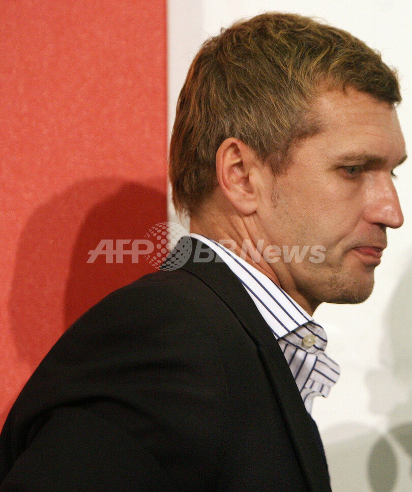 【ミュンヘン/ドイツ 11日 AFP】サッカー、ドイツ・ブンデスリーガ・第21節、バイエルン・ミュンヘン(Bayern Munich)vsアルミニア・ビーレフェルト(Arminia Bielefeld)。バイエルンのロイ・マカーイ(Roy Makaay)は、前半9分に先制点となるゴールを決め両手を広げて歓喜する。試合は、1-0でバイエルンが勝利しシーズン11勝目を挙げた。(c)AFP/DDP/OLIVER LANG