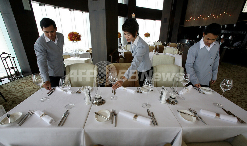【バンコク/タイ 11日 AFP】バンコク(Bangkok)の最高級ホテルで10日、ミシュラン3つ星シェフ6人の手による100万バーツ(約340万円)相当の超高級ディナーを楽しむイベントが行われた。