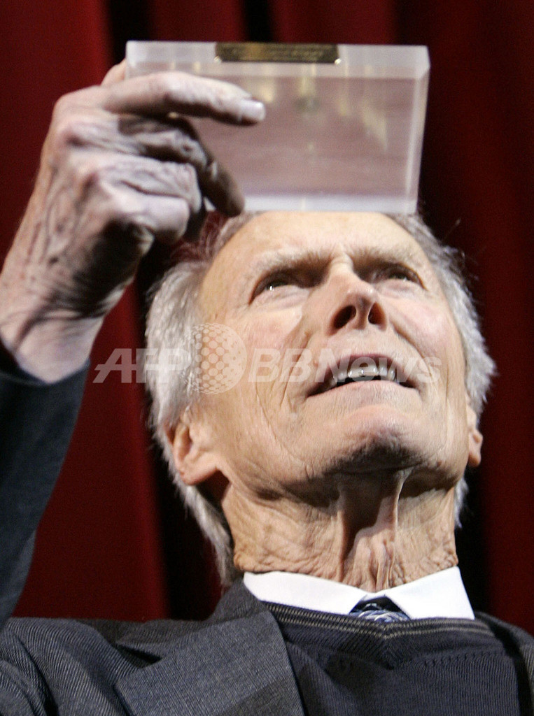 【ベルリン/ドイツ 12日 AFP】開催中の第57回ベルリン国際映画祭(The 57th Berlin International Film Festival)で11日、米俳優/監督のクリント・イーストウッド(Clint Eastwood)が、特別功労賞にあたるベルリナーレ・カメラ賞(Berlinale-Kamera award)を受賞した。同日にコンペ部門外で出品されているイーストウッドの作品「硫黄島からの手紙(Letters From Iwo Jima)」の欧州プレミア上映会も開催された。写真は、同賞を受け取るイーストウッド。(c)AFP/MARCUS BRANDT