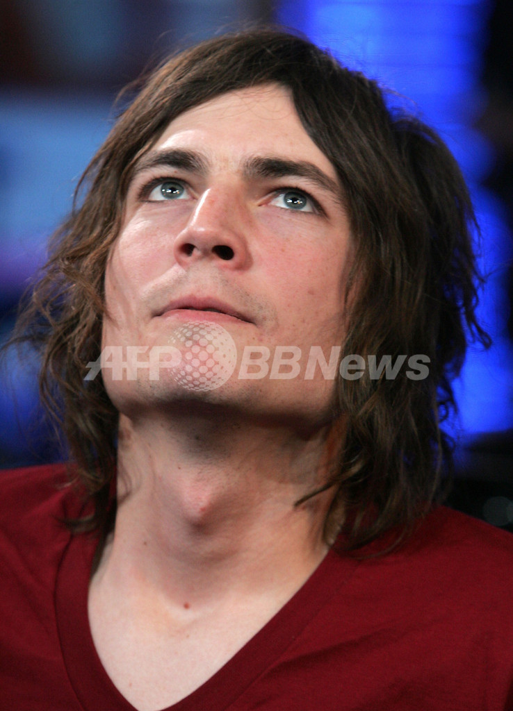 【ニューヨーク/米国 13日 AFP】カリフォルニアのバンド、オーガスターナ (Augustana)が12日、MTVタイムズ・スクウェア・スタジオ(MTV Times Square Studios)で行われた音楽専門チャンネルMTVの人気音楽情報番組「Total Request Live」の生放送に出演した。写真はステージに登場したリードシンガーのDan Layus。(c)AFP/Getty Images Peter Kramer