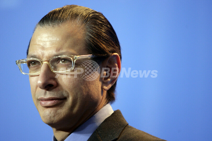 写真はフォトコールに登場した出演俳優のジェフ・ゴールドブラム(Jeff Goldblum、左)と出演女優のヤスミン・タバタバイ(Jasmin Tabatabai)。(c)AFP/JOHN MACDOUGALL