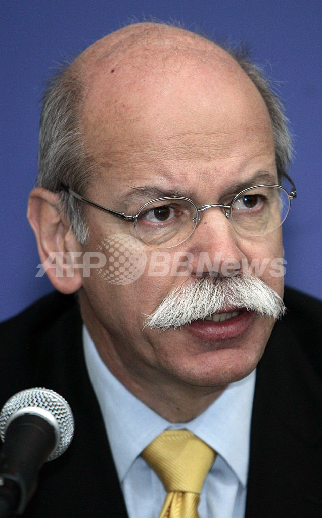 【オーバンヒルズ/米国 15日 AFP】ダイムラー・クライスラー(Daimler Chrysler)は14日、米国部門を黒字転換させる大規模再編の一環として、同社の赤字部門、クライスラーの人員1万3000人の削減計画を発表した。クライスラーの総従業員数は8万2500人だが、削減される人数はその約16%にあたる。6年前にも収益回復計画が実施され、当時は2万6000人が削減され、16の工場が閉鎖された。写真はミシガン(Michigan)州のオーバンヒルズ(Auburn Hills)で同日、記者会見に臨むディーター・ツェッチェ(Dieter Zetsche)社長(中央)と、同社首脳陣。(c)AFP/JEFF HAYNES