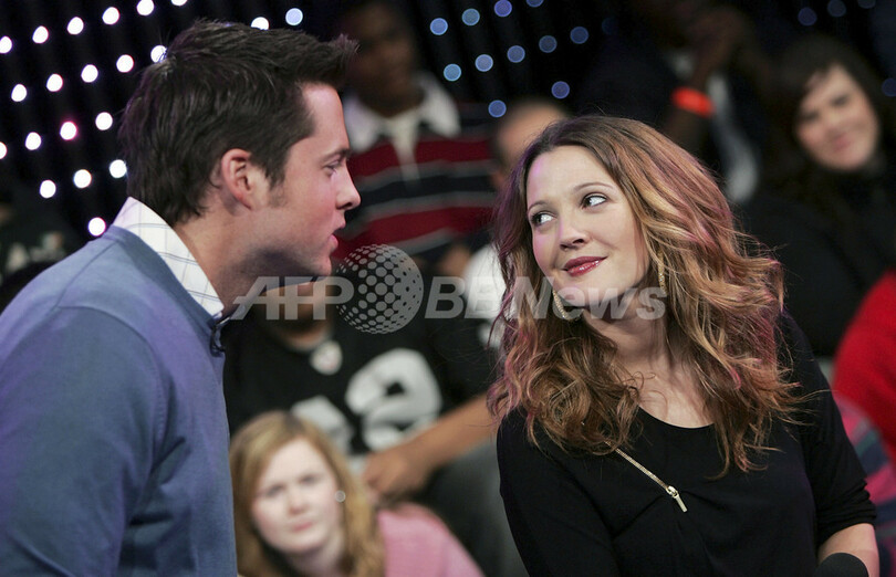 【ニューヨーク/米国 15日 AFP】女優のドリュー・バリモア(Drew Barrymore)が14日、MTVタイムズ・スクウェア・スタジオ(MTV Times Square Studios)で行われた音楽専門チャンネルMTVの人気音楽情報番組「Total Request Live」の生放送に登場した。バリモアがヒュー・グラント(Hugh Grant)と共演したロマンス・コメディ映画「ラブソングができるまで(Music and Lyrics)」は同日公開を迎えた。(c)AFP/Getty Images Scott Gries