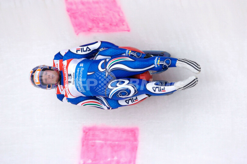 【スィグルダ/ラトビア 18日 AFP】リュージュW杯(FIL Luge World Cup)・第9戦、男子二人乗り。イタリアのゲアハルト・プランケンシュタイナー(Gerhard Plankensteiner)/オズワルト・ヘーゼルリーダー(Oswald Haselreider)組は、合計タイム1分25秒892(1本目42秒971、2本目42秒921)をマークして今季初優勝を飾った。(c)AFP/ILMARS ZNOTINS
