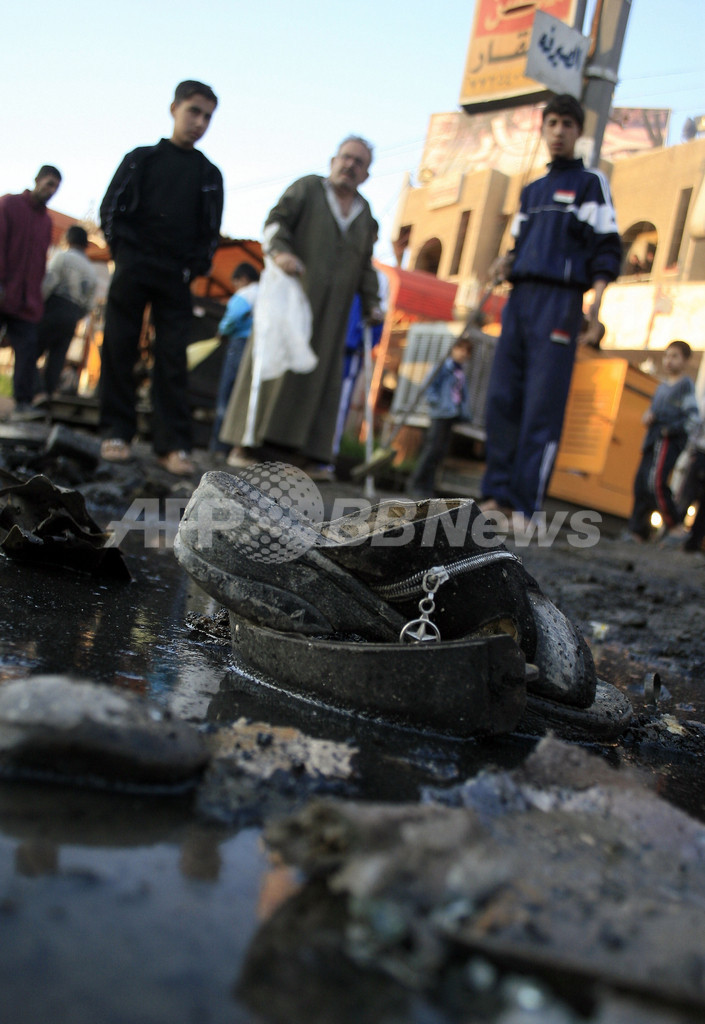 写真は同日、自爆攻撃が行われたサドルシティーで、残された犠牲者の靴。(c)AFP/WISSAM AL-OKAILI