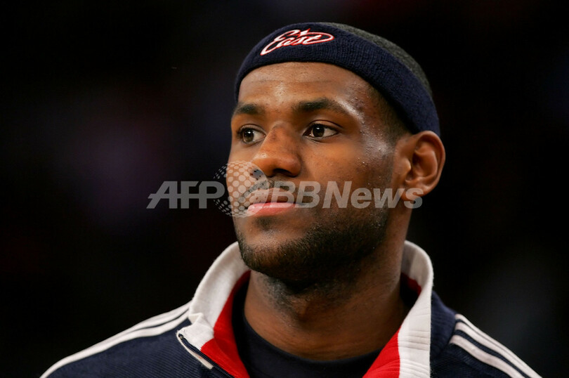 写真は、試合中に笑顔をみせるコービー(中央)とレブロン(右)。(c)AFP/Getty Images Lisa Blumenfeld