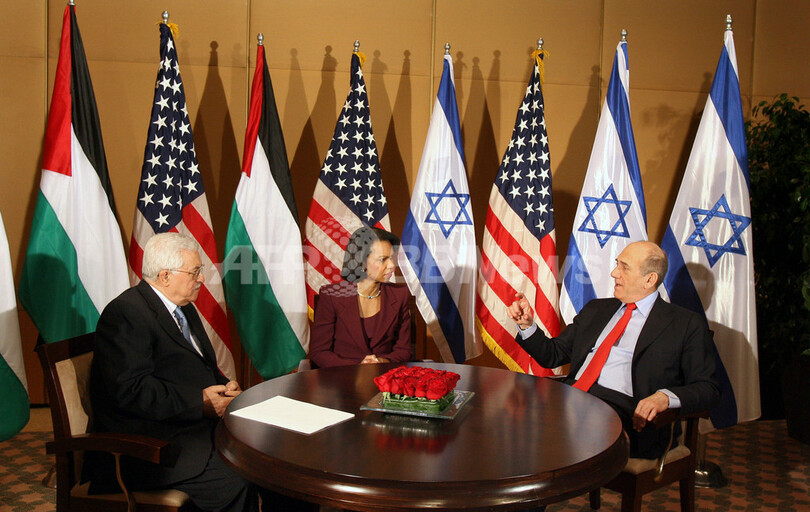 【エルサレム/イスラエル 19日 AFP】コンドリーザ・ライス(Condoleezza Rice)米国務長官は19日、パレスチナ和平交渉再開の第1歩として、イスラエルのエフド・オルメルト(Ehud Olmert)首相およびパレスチナ自治政府のマフムード・アッバス(Mahmud Abbas)議長と会談を行ったが、協議の継続を約束したほかには具体的な進展はみられなかった。