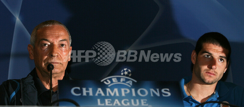 写真は、会見に臨むフェレイラ監督(左)とリサンドロ・ロペス。(c)AFP/NICOLAS ASFOURI
