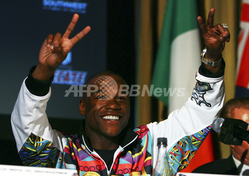 <ボクシング>デラホーヤ メイウェザー・ジュニアと共に会見に登場 - 米国