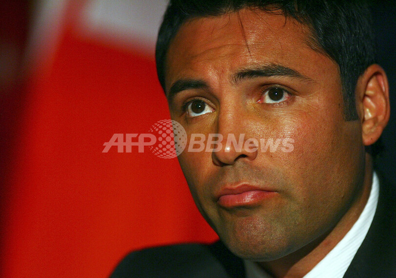 <ボクシング>デラホーヤ メイウェザー・ジュニアと共に会見に登場 - 米国
