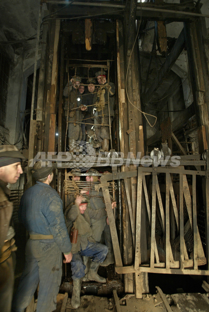 【ブカレスト/ルーマニア 22日 AFP】1990年には30万人の住民を抱えた中西部ジウ谷(Valea Jiului)地方。しかし1997年に世界銀行(World Bank)とのプロジェクトで採算性の悪い炭鉱閉鎖が決定して以来、人口は急激に減り、現在はわずか15万人に半減している。炭鉱で働く作業員の数も、この17年間で4万6000人から1万1800人まで減少した。2007年1月1日に実現した欧州連合(EU)加盟の条件として、国からの援助金も今後徐々に削減され、2011年には完全に停止される。各炭鉱の閉鎖の可否については5月までに政府が決定する見通しとなっている。写真は20日、首都ブカレスト(Bucharest)西方350キロメートルのルペニ(Lupeni)炭鉱でエレベーターに乗り坑内に向かう作業員たち。(c)AFP/DANIEL MIHAILESCU